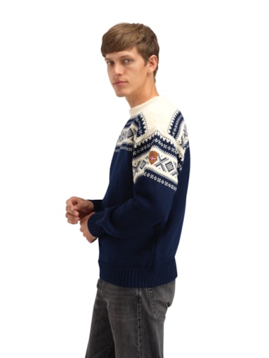 • The Original! Dale of Norway's first official Olympic sweater, originally designed for the 1956 Winter Olympics in Cortina d'Ampezzo, by Bitten Eriksen for Dale of Norway. This iconic pattern, rooted in traditional Norwegian heritage, has become one of Norway’s most beloved designs. Crafted from 100% Norwegian wool for unmatched quality and authenticity.