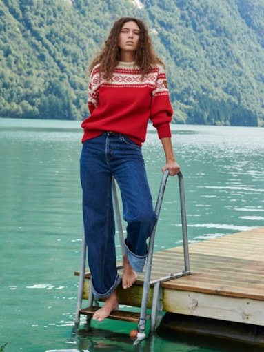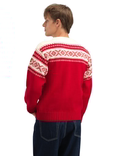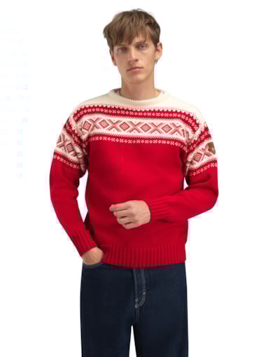 • The Original! Dale of Norway's first official Olympic sweater, originally designed for the 1956 Winter Olympics in Cortina d'Ampezzo, by Bitten Eriksen for Dale of Norway. This iconic pattern, rooted in traditional Norwegian heritage, has become one of Norway’s most beloved designs. Crafted from 100% Norwegian wool for unmatched quality and authenticity.