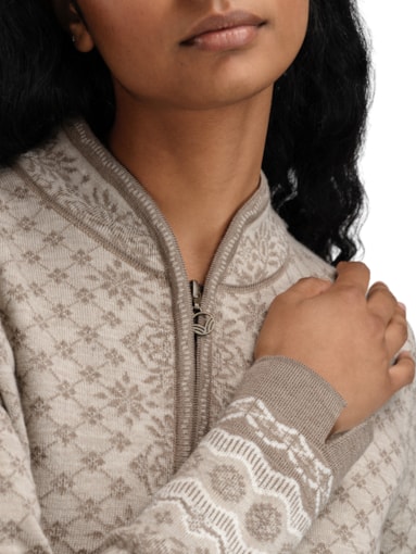 • Solfrid is a timeless classic and one of our most popular wool jackets. It features delicate, feminine pattern details, elegant slits at the sides and cuffs, and a relaxed fit that flatters a range of silhouettes. The jacket is knitted from 100% soft and lightweight merino wool and includes a practical two-way zipper.